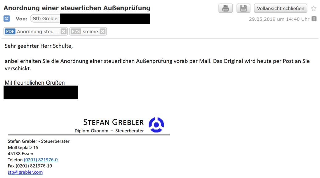 Die Daten des Täters und der Zeugen waren geschwärzt, so hatte er den Produzenten des Videobeitrags nachweislich beauftragt und dies in dem Video auch klar angekündigt. Ein Beleg für politisch motivierte Justizhandlungen. In der Hochphase des Buchsetzens und der Vorbereitungen für die Verlagsgründung erhielt Thorsten Schulte aufgrund einer Betriebsprüfung am 18. August 2019 und am 6. September 2019 Vertragsanforderungen etc. für das Finanzamt. Eine im November 2012 angeordnete Betriebsprüfung dauerte damals bis Juli 2016 und ging ohne einen Euro oder Cent Nachzahlung für Thorsten Schulte aus. Über dreieinhalb Jahre dauerte die Betriebsprüfung für einen Freiberufler. Obgleich er sich nichts zuschulden kommen ließ, wurde eine erneute Betriebsprüfung am 29. Mai 2019 angeordnet. Natürlich ist es ein reiner Zufall, dass die Anordnung einer steuerlichen Außenprüfung ausgerechnet unmittelbar vor einer wichtigen öffentlichen Diskussion beim Hilton Talk mit Prof. Patzelt und Alexander Mitsch, dem Vorsitzenden der Werteunion der CDU erfolgte: Es ist sicherlich auch ein normaler Vorgang, dass ein Steuerberater im April 2019 ohne ein Gespräch, ohne ein Telefonat oder ohne Vorankündigung ein Mandat beendet. Dass der Steuerberater von 2008 bis 2017 alle Steuererklärungen vornahm, ändert sicher nichts an der Normalität eines solchen Vorgehens. Übrigens wurden auch bei der Veröffentlichung des Buches „Fremdbestimmt“ als Ebook Steine in den Weg gelegt. Um ein solches digitales Buch auf möglichst vielen Plattformen vermarkten zu können, benötigt man einen Dienstleister wie Libreka oder Bookwire. Schauen Sie sich das Mail von Thorsten Schulte. An Libreka musste Thorsten Schulte am 18. September 2019 folgende Mail versenden: